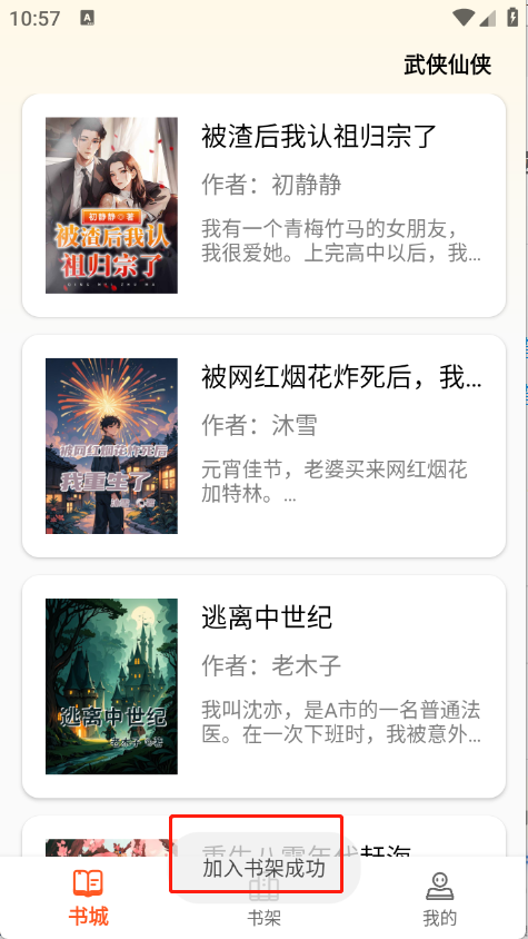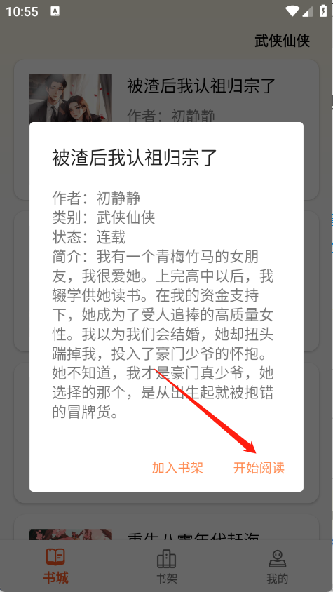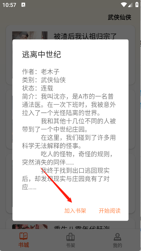 1、打开首页后,找到你感兴趣的小说并进入阅读页面,接着点击“加入书架”按钮。