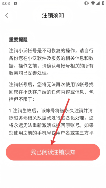 4、仔细阅读【注销须知】的内容后,点击【我已阅读注销须知】按钮,以此确认并知晓注销前的相关提示信息。