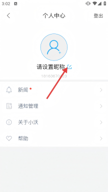 2、进入【个人中心】后,找到【请设置昵称】选项,点击其旁边的编辑图标,完成账号昵称信息的完善。