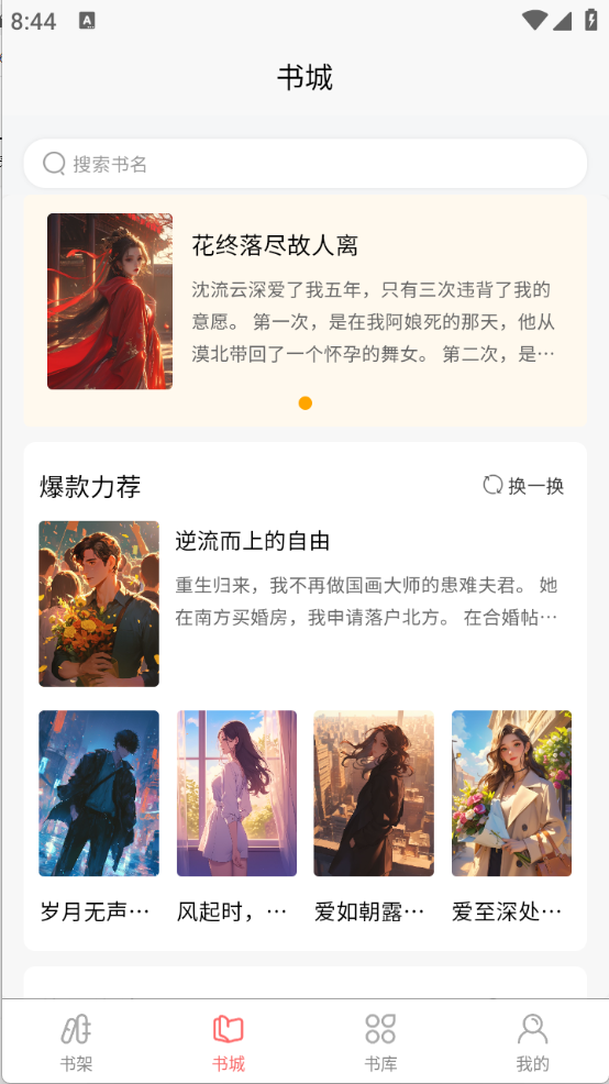 2、“书城”页面,为用户推荐了当前热门的小说资源。