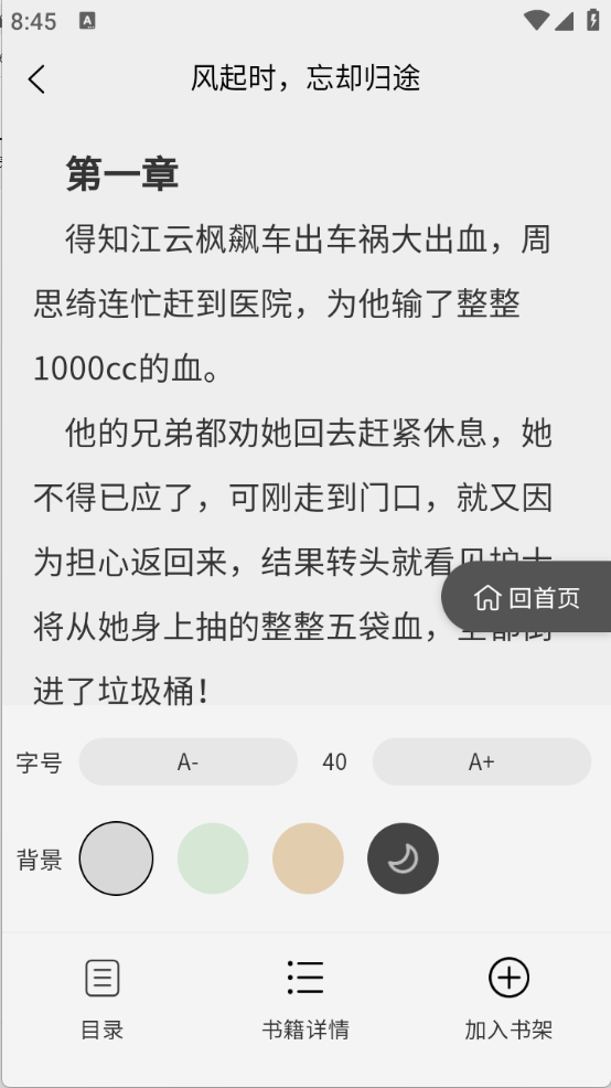 5、用户点开喜欢的小说资源以后,可以对阅读页面进行各种设置。