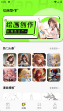 3在绘画页面里,设有绘画创作、热门头像、漫画模板等多个不同的版块。