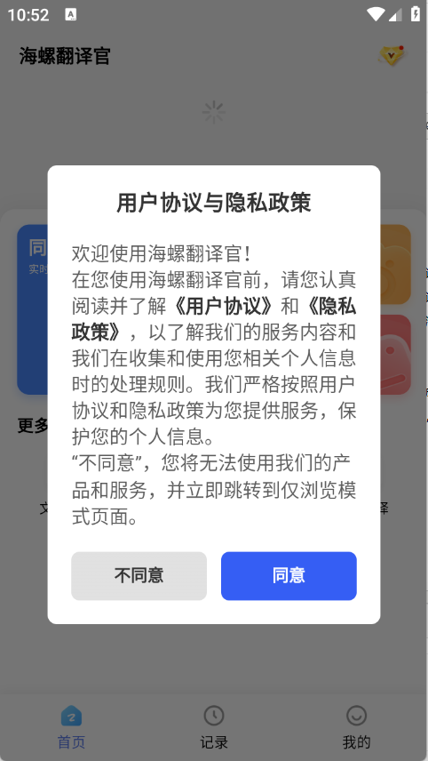 1、用户首先需在3G游戏网的海螺翻译官中,查看并同意隐私政策与用户协议。