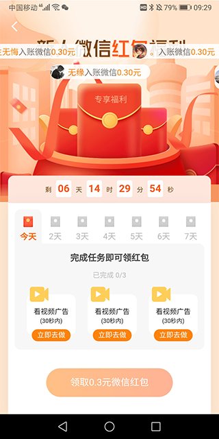 通常新用户登录后能领取1元左右的新人红包,还可在线办理提现手续。
