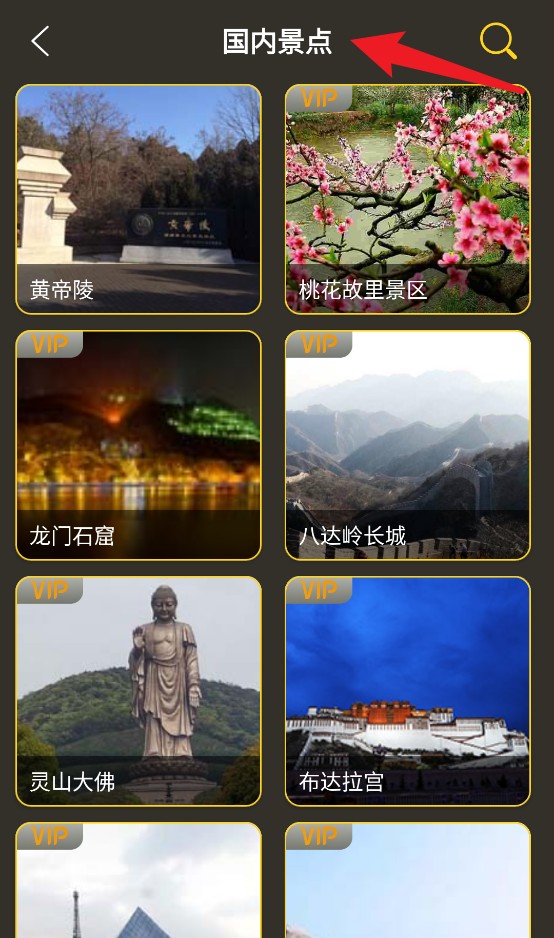 4点击“国内景点”后,您可以浏览各地的知名景点,也能借助右上角的搜索图标快速找到自己感兴趣的旅游地点。