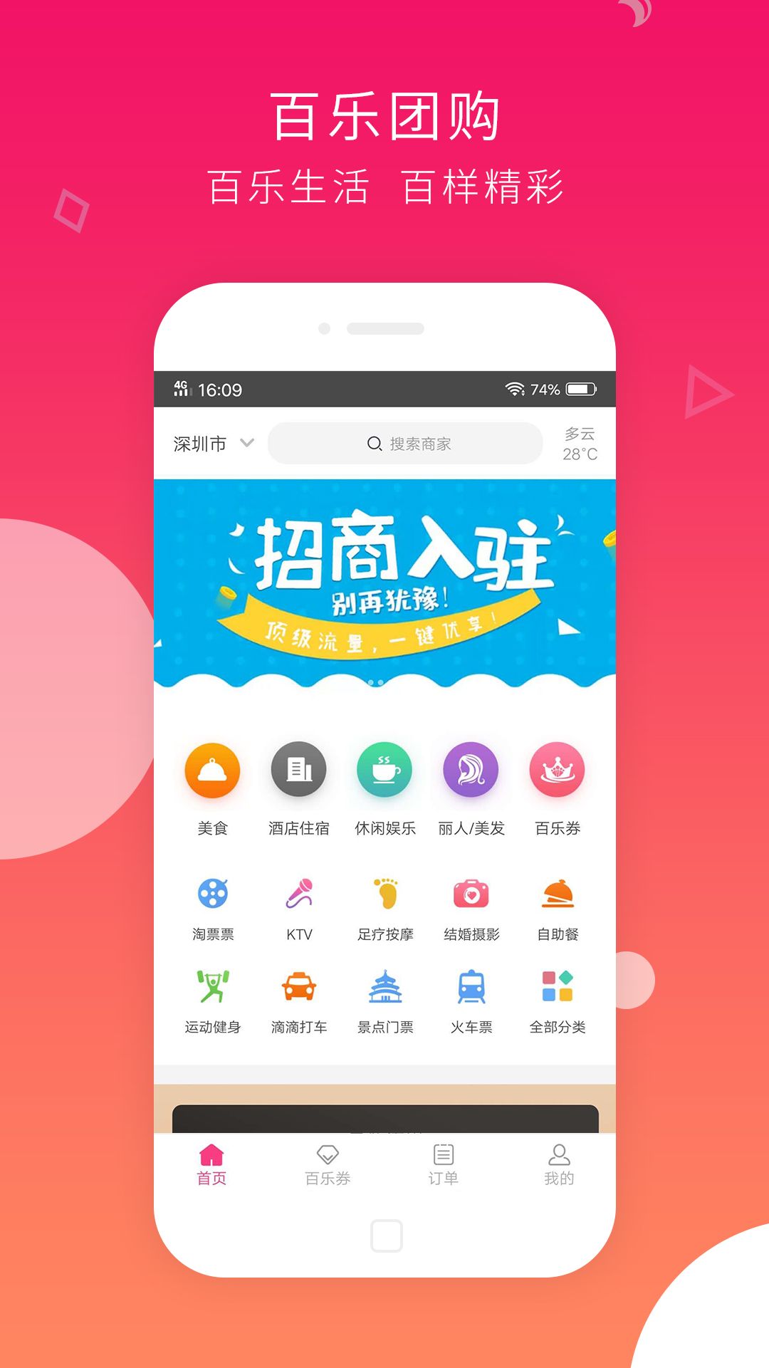 百乐团购作为融合线上营销与线下引流功能的综合性本地电商平台,配备了专业的商业策划及营销团队,为入驻商户提供店务运营、市场策划、引流推广、品牌培育等多维度服务;同时为平台用户筛选并供应优质实惠的便民生活服务,涵盖美容美发、瑜伽舞蹈、美甲美睫、美食、KTV、休闲娱乐、运动健身、教育培训、婚纱摄影、酒店、宠物服务、团游团建、景点门票、演出影票、火车票、打车出行等各类周边服务。用户通过平台可一键掌握周边商家活动动态,精准搜索优惠信息与所需服务类型,实现吃喝玩乐、学习成长等需求的一站式满足,切实体验到“百家百乐”的品质服务。