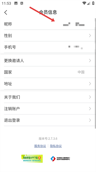 3、进入会员信息页面后,找到并点击【昵称】选项,即可跳转至昵称修改页面。