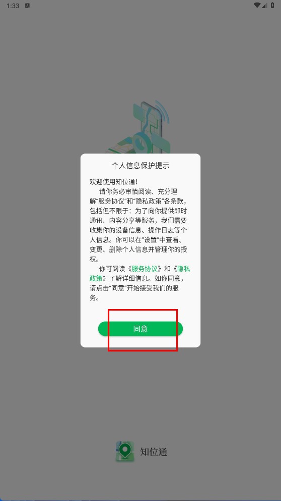 1请先勾选同意个人信息保护相关提示,完成确认后即可进入知位通应用。