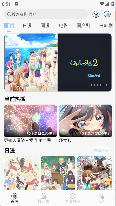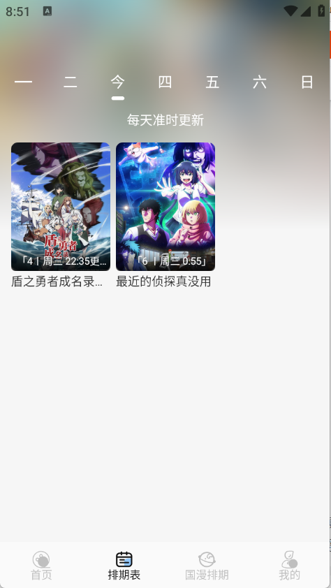 3、排期表提供每天动漫更新情况。