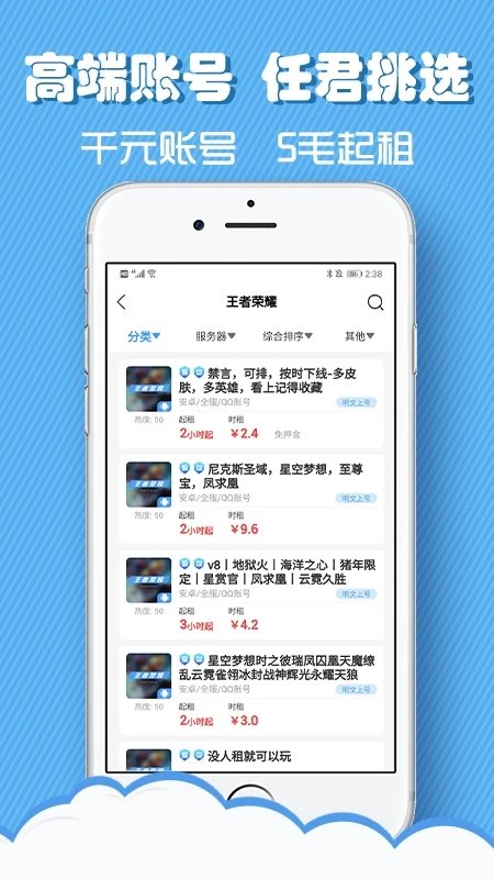 这款免费的账号交易应用,支持用户发布或租用各类热门电脑游戏的账号。无需耗时练级或购置装备,就能直接体验满级神装账号,一键登录功能保障使用安全,感兴趣的用户可立即操作体验。