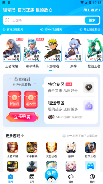 为游戏玩家量身打造的账号交易与租赁平台,提供账号购买与租借服务,平台汇聚了王者荣耀、和平精英、火影忍者、枪战王者、使命召唤等热门游戏的优质账号资源,无论是多皮肤的精品账号,还是高段位、大国标、高KD的账号,都能在这里便捷获取。