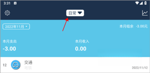 1、首先打开这款应用,点击当前的记账本“日常”。