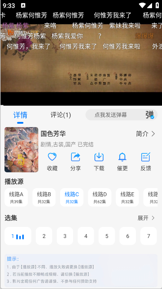 5、用户找到并点击想看的影视资源以后,可以观看弹幕、支持投屏以及分享等。