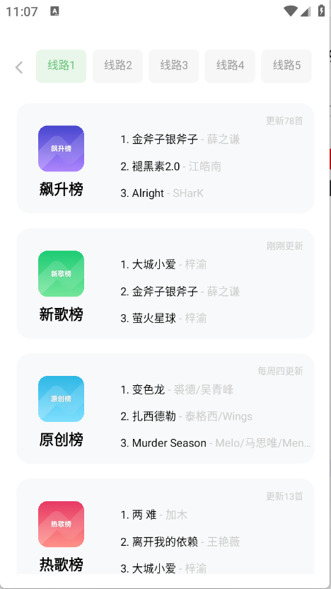 2、提供各种类型的音乐榜单,用户可以更轻松地找到音乐。