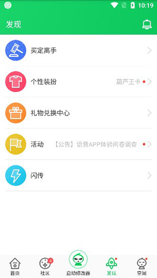 3点击“发现”页面后,可使用多种功能,比如个性装扮、礼包兑换等。
