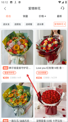 3在爱情鲜花的展示页面中,找到并点击“狮子座星座守护花”这一选项,即可跳转至该商品的具体信息页面。