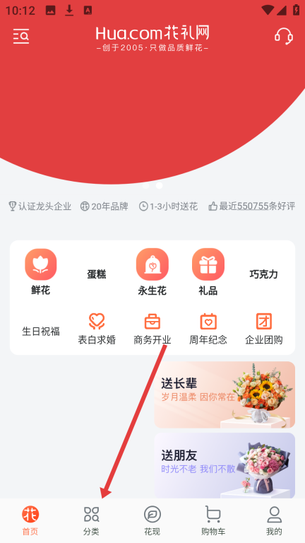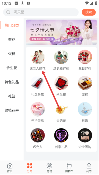 2在分类界面选择“为恋人挑选鲜花”的选项,即可跳转至爱情主题鲜花的展示列表。