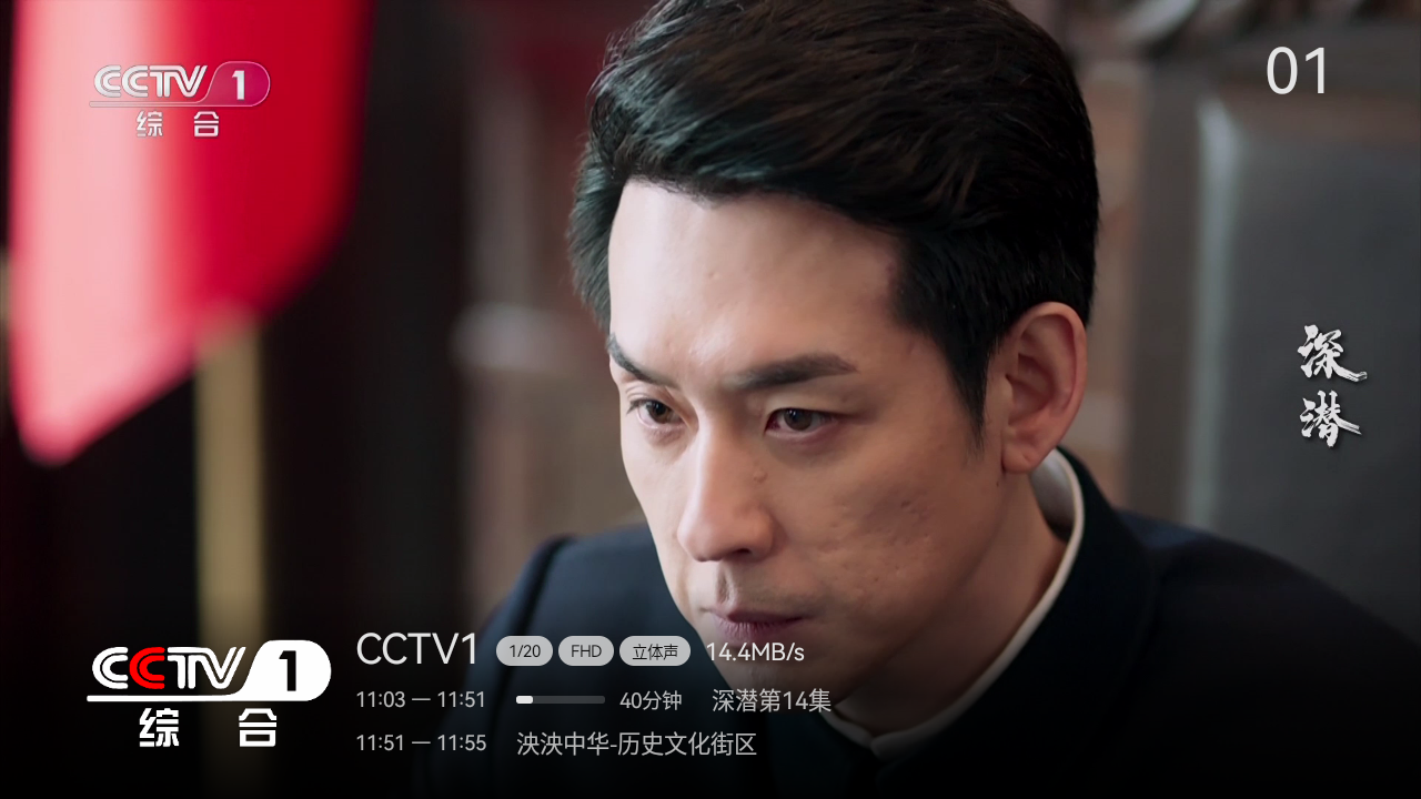 2进入首页后,点击屏幕任意位置,左侧便会显示出全部电视频道,涵盖央视、卫视和地方频道。