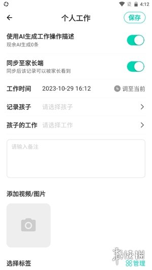 5完成相关信息的填写后,可选择开启“同步家长端”的功能选项,最后点击界面右上角的保存按钮,即可结束整个操作流程。