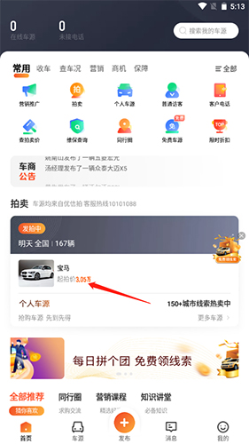 5平台内的汽车通知会及时推送,方便用户更好地查看并快速做出选择。