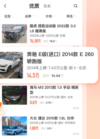 5有一款由北京某知名互联网企业开发的二手车服务平台,既能满足普通用户线上交易车辆的需求,也支持汽车从业者在此推广新车或二手车型。还在为找辆合适的二手车四处奔波,翻遍联系人却遇不到爽快的卖家?从品牌车型到价格里程,从上牌时间到保险状况,再加上摸不清的维保记录……买卖双方都谨慎试探,二手车交易何时能更省心?