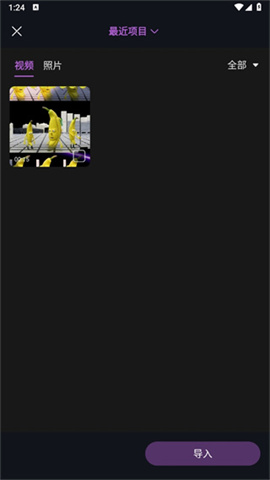 2、在图片视频选择页面,选择视频并添加到项目中。