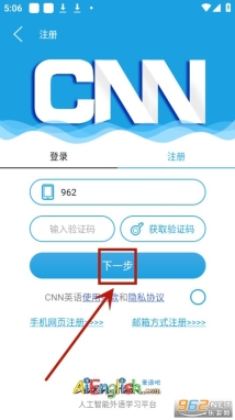 5.输入手机号和验证码选择下一步进行注册