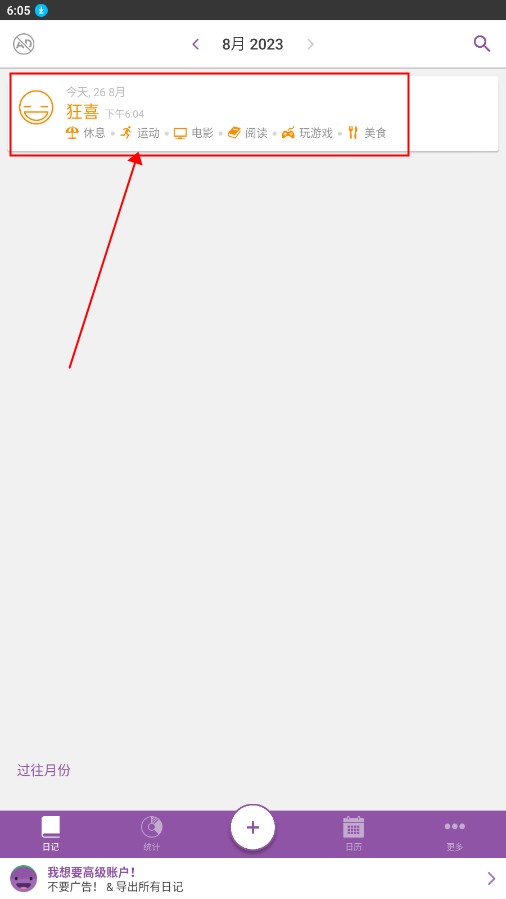 5界面中间的加号按钮,用于记录特定日期的日记内容,还能通过“其他日期”选项来选定不同时间进行填写。