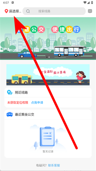 1、打开公交e出行应用,点击页面左上角的“请选择”选项,完成城市选择的设置操作。