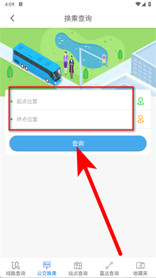 4、输入起点与终点位置后,点击查询按钮,即可得到公交换乘方案。