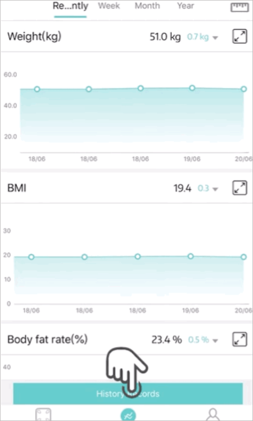 2找到图表界面下方的【历史记录】按钮,点击它就能跳转至历史数据页面。