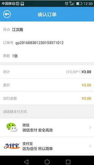 2. 接下来您能查看自己的订票信息,确认无误后选择支付方式,最后一键完成购买即可。
