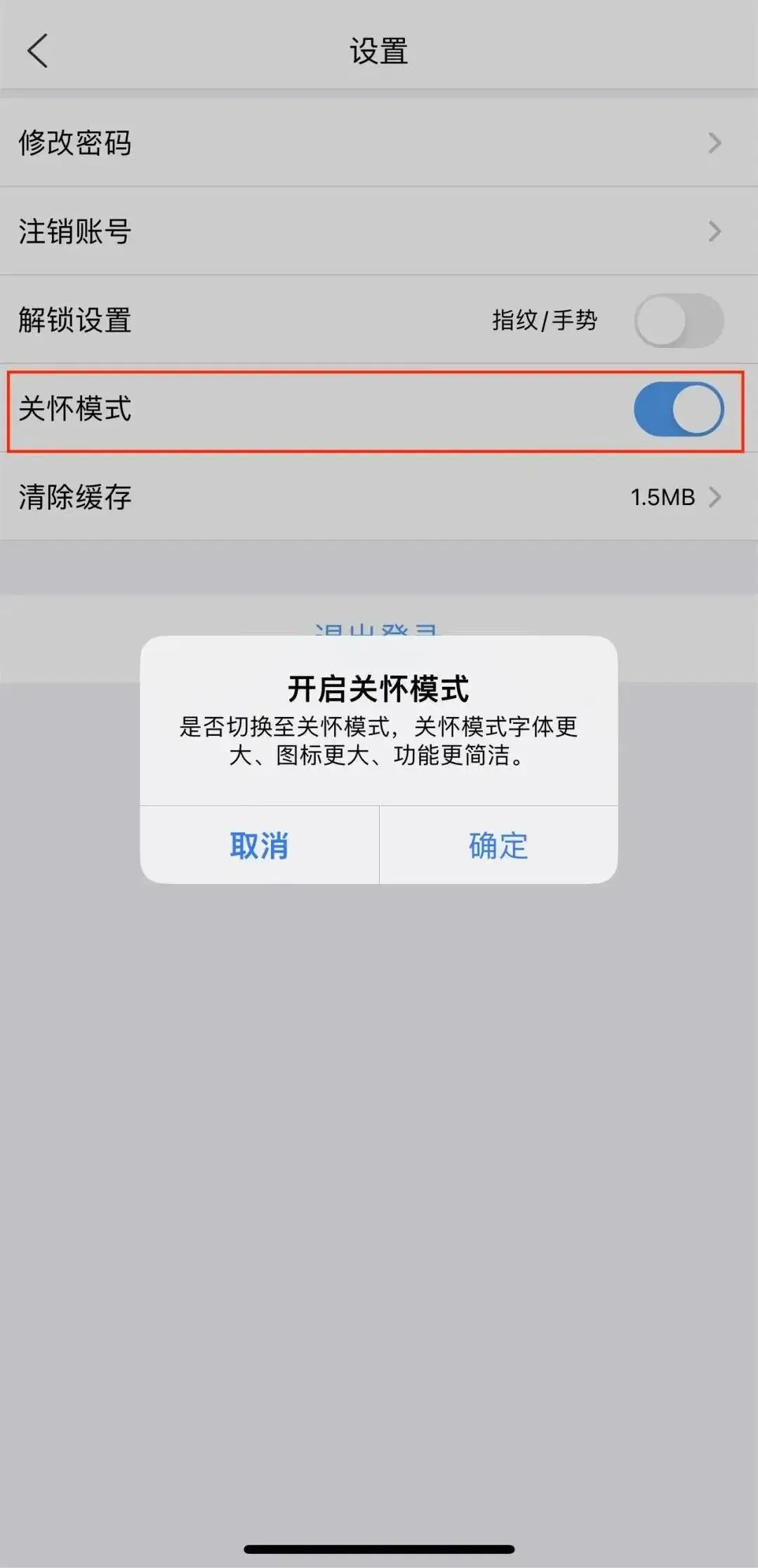 关怀模式提供更大字体、操作更方便;