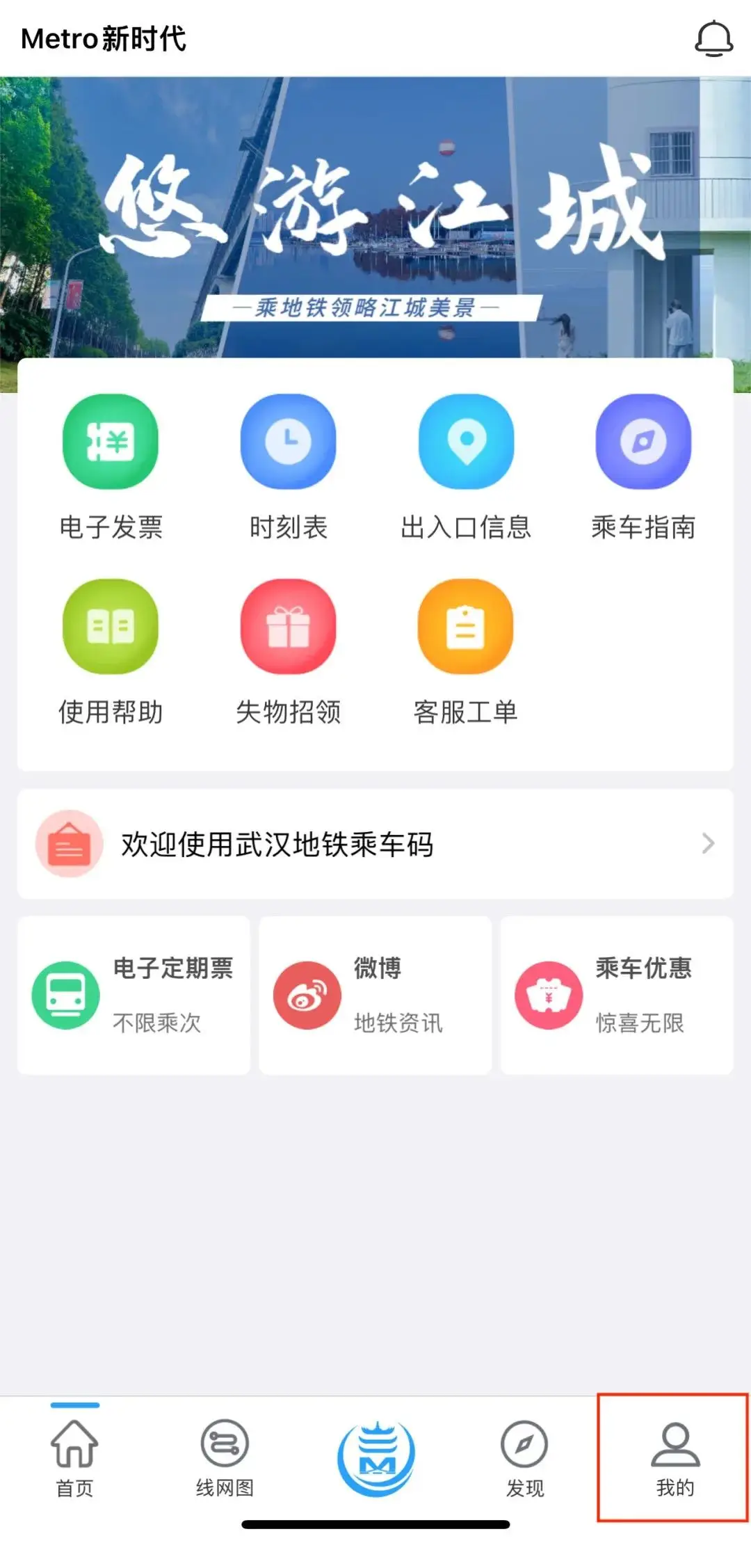 1. 启动Metro新时代应用程序,点击界面右下角的【我的】按钮