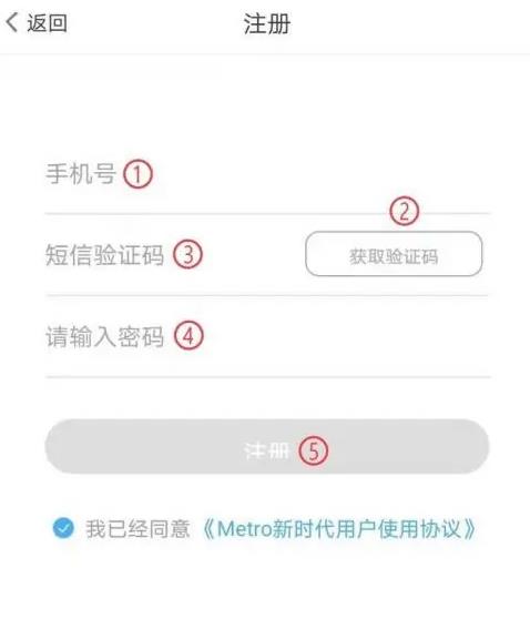 4在账号注册界面,按顺序填写手机号码、短信校验码和登录密码,然后点击注册按钮完成操作。