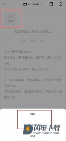 3、接着点击界面里的“上传照片”区域,选择拍照或者从手机相册里挑选,你就能轻松添加图片啦。