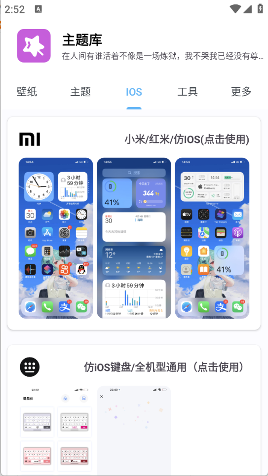主题库,这里有壁纸、主题以及工具等类型,安卓用户也可以仿ios主题,这些美化工具都是免费使用的,适配多种手机型号,让安卓手机用户也可以体验到苹果主题页面,会及时更新新的内容,让手机桌面看起来更加美观。