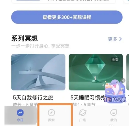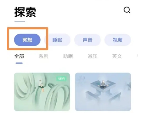 2、进入探索页面后,通过滑动操作找到【冥想】栏目,点击该栏目即可进入。