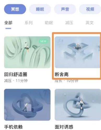 3、请接着在冥想界面里找到【断舍离】相关内容,直接点击就能开始播放了。