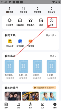 1进入【我的】页面后,先浏览各项功能,接着点击【设置】选项,就能开启后续的字体设置操作了。