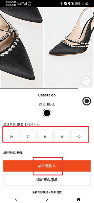 2接着找到你喜欢的商品详情页,挑选合适的尺码,再把它添加到购物车里。