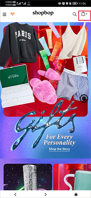 3、返回主页点击主页右上角购物袋图标