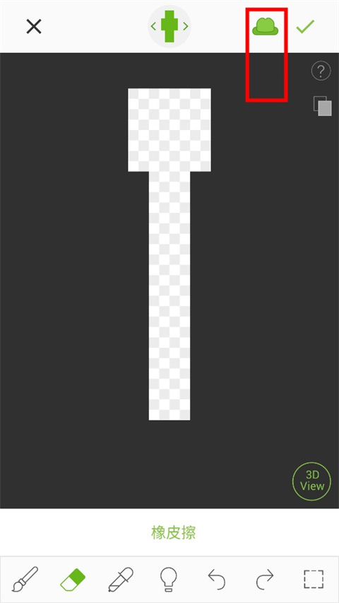 5、点击顶部的帽子图标,即可对皮肤的第2层进行编辑。编辑皮肤第2层能让皮肤人物更具真实感与立体感,点击圈出的图标,可使人物皮肤的第1层和第2层同时呈现。