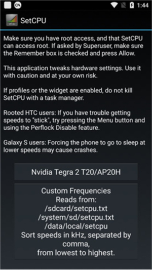 1、手动频率设置:能够自主选择手机CPU运行的具体频率。