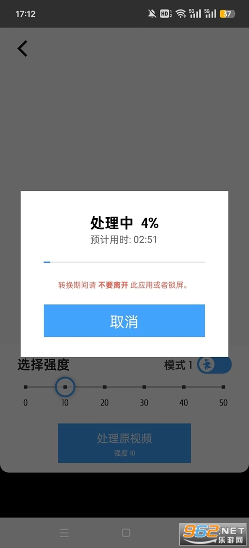 4、选择完成后,可以对其模糊强度进行增加或减少的调整。