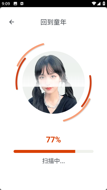 3、按照提示步骤操作,选定对应年龄后,系统会自动生成童年照片,最后保存该照片即可。