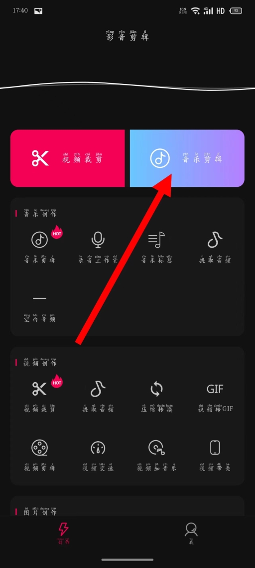 1、打开影音剪辑,点击音乐剪辑选项。