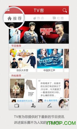 由IT猫扑平台推出的这款TV客应用,属于移动设备端的影视观看工具。它整合了多家主流视频平台的内容资源,用户可以便捷浏览各类高清影视节目;同时具备出色的视频解码性能,使用时不会造成设备过热,电量消耗也处于较低水平,因此受到了广大用户的喜爱。如果您对此感兴趣,不妨下载体验一番。