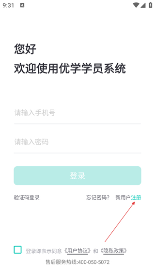 3进入注册界面后,首先填写手机号码,接着点击“获取验证码”按钮来获取验证码,之后将收到的验证码填入对应的输入框中。