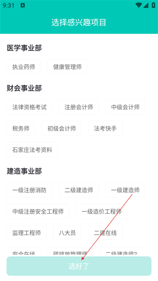 2在进入登录界面后,若要进行新用户注册操作,需先点击对应的注册入口,此时系统会提示选择感兴趣的项目类别,待完成类别选择后,再点击确认按钮即可进入下一步。
